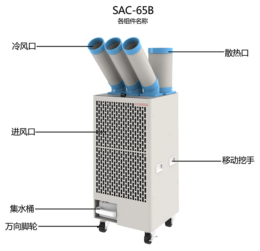 通道降溫 對(duì)于敞開(kāi)式的大空間區(qū)域,使用中央空調(diào)成本太高,我們可以使用大風(fēng)量的移動(dòng)冷氣機(jī),也能有效的對(duì)局部空間進(jìn)行降溫。