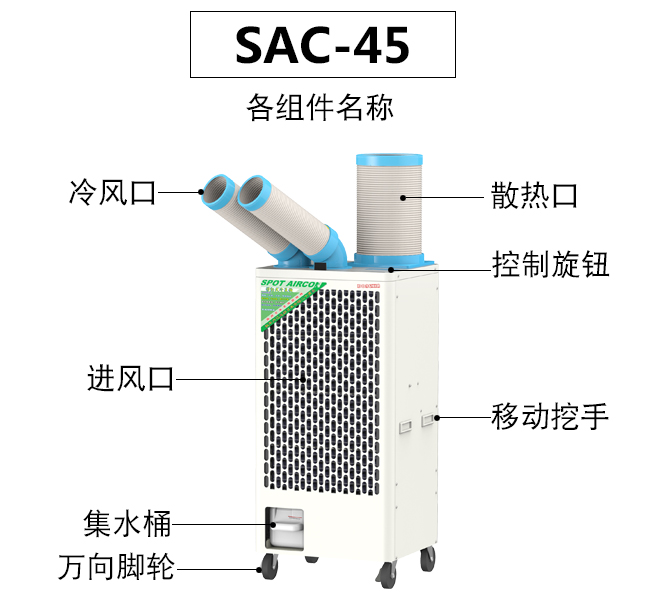 通道降溫 對于敞開式的大空間區(qū)域,使用中央空調(diào)成本太高,我們可以使用大風量的移動冷氣機,也能有效的對局部空間進行降溫。