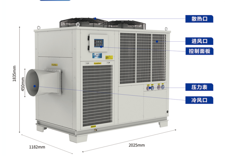 設(shè)備降溫 由于冷氣機(jī)產(chǎn)生的是不含水分的空調(diào)風(fēng),所以不用擔(dān)心電路短路、鈑金生銹等問題,可直接對(duì)設(shè)備的高溫部位進(jìn)行降溫。