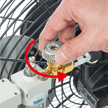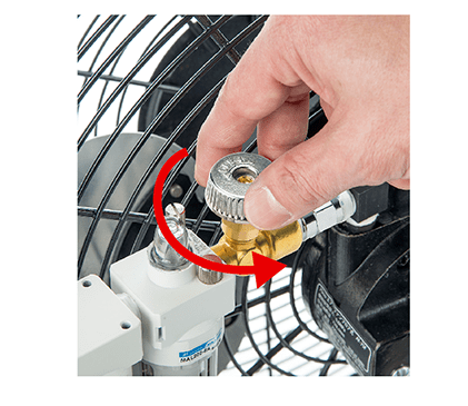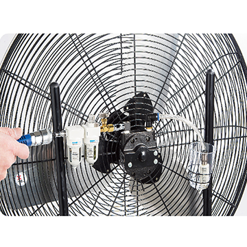 使用空氣壓縮機所制造的壓縮機空氣驅(qū)動馬達(dá),帶動風(fēng)扇運轉(zhuǎn)。